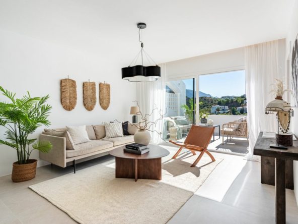 Discover this beautifully refurbished middle-floor apartment located in La Quinta, Benahavís. Offering approximately 100 sqm of elegant interior space, the property combines comfort, light, and open views in a serene setting. The generous terrace enjoys panoramic mountain scenery with glimpses of the sea, creating the perfect space for outdoor dining, morning coffee, or evening sunsets.