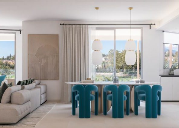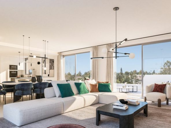 This magnificent 4 bedrooms duplex welcomes us in a superb entrance hall that gives access to the generously sized living room connected with a modern open plan kitchen that have been superbly equipped with top-of-the-line appliances, on this level there are 2 bedrooms and in the upper level there are another 2 bedrooms en suite. The terrace of the property enjoys beautiful views over the Guadalmina golf course.