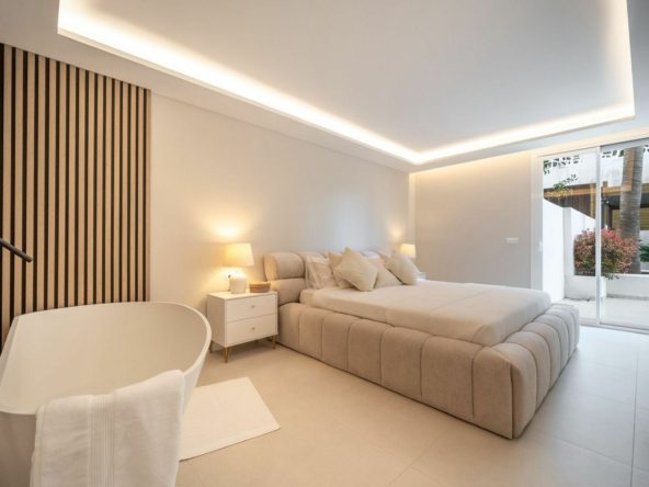 Experience luxurious living in this stunning newly refurbished ground floor apartment, located in the prime area of Marbella Nueva Andalucía, just a short walk to Puerto Banús. This sleek and modern property features three spacious bedrooms, each with its own en-suite bathroom, offering ultimate comfort and privacy. Additionally, there is a stylish guest toilet for visitors. The contemporary design combines elegance with functionality, creating a sophisticated atmosphere perfect for enjoying the Marbella lifestyle. The private garden provides breathtaking mountain views and is perfect for entertaining or relaxing in style, complete with a private hot tub and outdoor kitchen. Whether you're unwinding on the spacious terrace or exploring the vibrant nearby marina, this penthouse offers an unparalleled combination of location, luxury, and modern comfort.