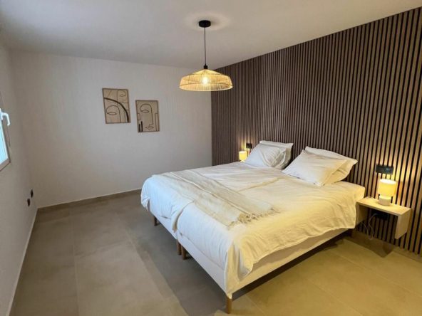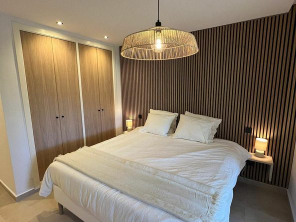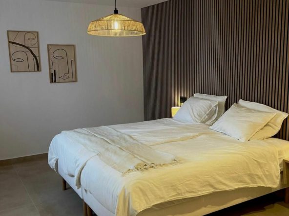 The apartment features two bright and comfortable bedrooms, a modern bathroom, and an open-plan living area that seamlessly connects to the terrace. Every detail has been carefully designed to create a warm and welcoming atmosphere.