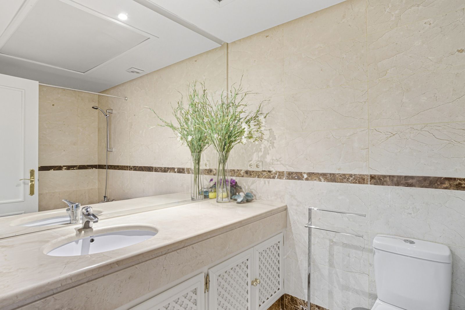 Elegant ground-floor apartment located in one of the most exclusive and peaceful developments in Nueva Andalucía. This carefully maintained property offers the perfect blend of comfort, privacy, and Mediterranean charm. It features two spacious bedrooms and two bathrooms, including a master bedroom with en-suite bathroom. Both bedrooms enjoy access to their own private terraces, providing plenty of natural light and added privacy. The independent kitchen is fully equipped and includes a convenient laundry area. The bright living-dining room opens onto a large private terrace with direct access to the communal pool, ideal for enjoying outdoor living all year round. Additional features include a private underground parking space and a storage room. Set within a gated community with 24-hour security, the complex is surrounded by lush tropical gardens, a lake, and a large swimming pool, offering a secure and peaceful environment. Ideally located just minutes from Puerto Banús, top golf courses, and all essential amenities, this property is an excellent choice as a permanent residence, holiday home, or investment opportunity.