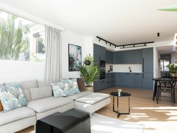 Welcome to this elegant 2-bedroom apartment, ideally positioned on the top floor in the heart of Nueva Andalucía—overlooking the renowned Aloha Golf Course and offering spectacular sea, mountain, and golf views. This thoughtfully renovated home combines modern comfort with Mediterranean charm.