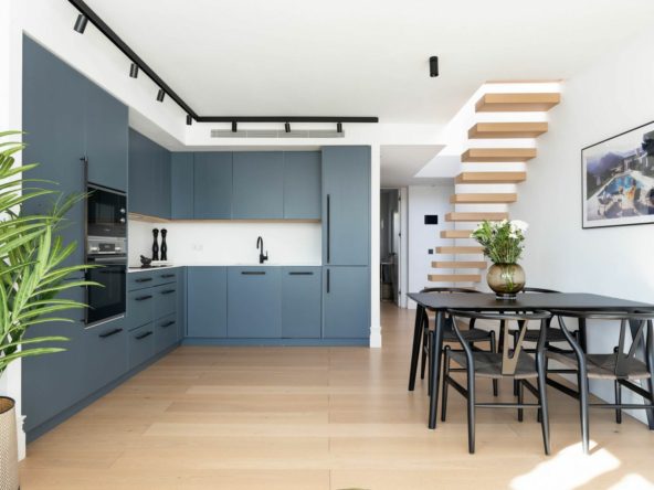 The fully equipped, kitchen flows seamlessly into a bright open-plan living and dining area, filled with natural light. Upstairs, you’ll find a spacious private terrace, perfect for sunbathing, alfresco dining, or simply relaxing while surrounded by greenery and panoramic vistas.