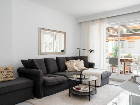 The apartment has been recently updated to modern standards, providing a sleek and contemporary living space. The community offers excellent amenities, including a large pool area, Padel courts, and an on-site restaurant, ensuring both comfort and convenience. Additionally, the location is unbeatable, with just a short stroll to the beach, shops, and local attractions. This penthouse is ideal for those seeking a stylish, sun-filled retreat in a vibrant and well-serviced neighborhood.