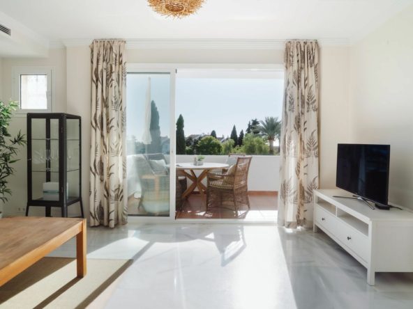 Sea view apartment on prime location. Located in the heart of Nueva Andalucía, this spacious 2-bedroom, 2-bathroom apartment offers the perfect blend of comfort, location and lifestyle. The apartment features a well-designed layout with generous living spaces filled with natural light throughout the day. The south-facing terrace enjoys open ocean views, making it the ideal spot for morning coffee or sunset evenings.