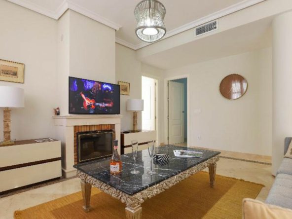 The property offers 2 bedrooms, 2 bathrooms, a spacious and bright living room with fireplace and direct access to a large west-facing terrace, enjoying afternoon sun.