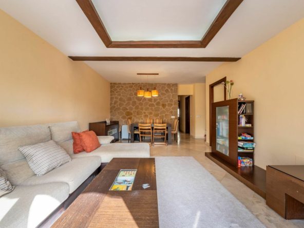 The property features 118,56 m² of built area, with approximately 72,96 m² of usable space, thoughtfully distributed. The bright, open-plan living and dining area connects directly to a southwest-facing terrace, enjoying abundant natural light and pleasant afternoon sun — ideal for relaxing or entertaining.