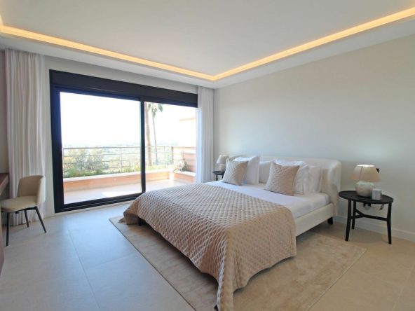 This exclusive renovated apartment is located in the prestigious Magna Marbella complex, in Nueva Andalucía, and stands out for its spectacular open views of the Mediterranean Sea, Gibraltar, and the surrounding golf courses. Ready to move in, it combines contemporary style with high-quality materials in a prime location within the renowned Golf Valley.