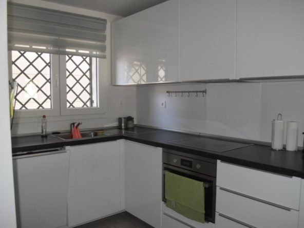 The apartment boasts a bright and thoughtfully designed layout featuring two spacious bedrooms and two bathrooms, including a master en-suite. A fully fitted kitchen flows seamlessly into the welcoming living area, which opens onto an impressive 50 m² covered terrace. From here, you enjoy direct access to a private garden — perfect for al fresco dining, sunbathing, or relaxing in complete privacy.