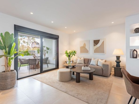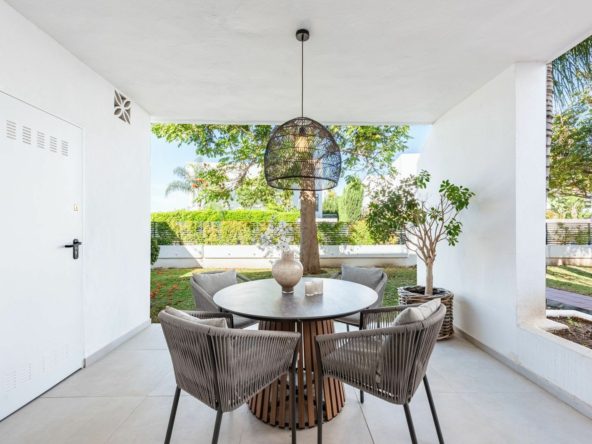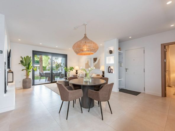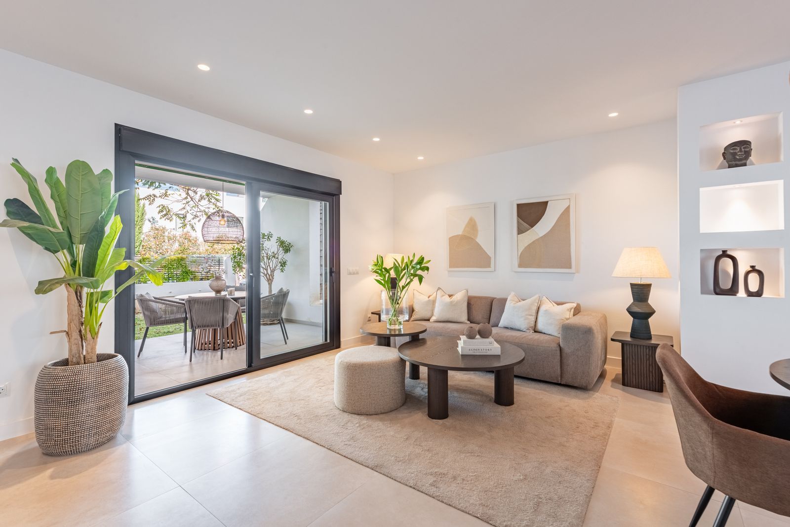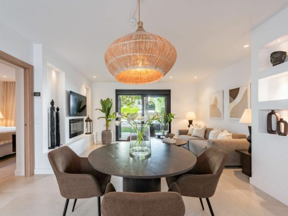 Welcome to this stylish and fully renovated ground-floor apartment located in the highly sought-after Andalucía Garden Suites, one of the most established and popular residential communities in Nueva Andalucía. The apartment features two tastefully decorated bedrooms and two modern bathrooms, all within an open-plan layout and furnished with carefully selected designer pieces that create a harmonious and elegant atmosphere.