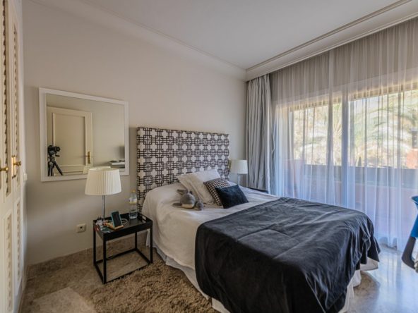 This is a High quality three bedrooms apartment on a first floor enjoy a fabulous location in the heart of the prestigious golf valley in Marbella, They are ideally situated within five minutes drive to the renowned marina of Puerto Banus with its beaches its shopping facilities, top restaurants and popular bars. The property has a bright and airy feel with lots of light south-east facing windows allowing plenty of light in. There are three terraces, one in the living room and two others in the bedrooms. From the main terrace you have direct views to pool. The finishes of the property are of a high standard and the apartment comes with underground parking and storage room.