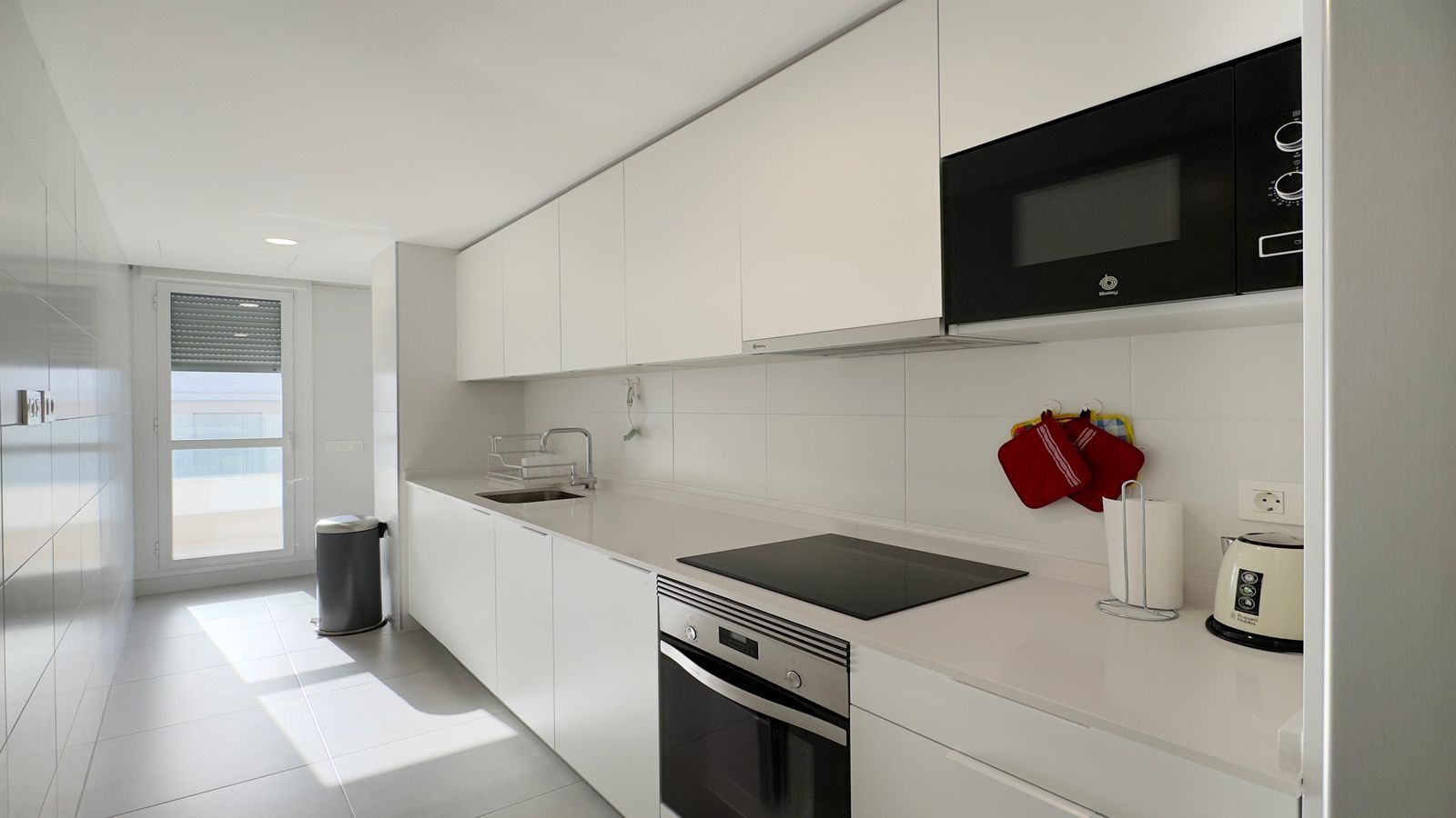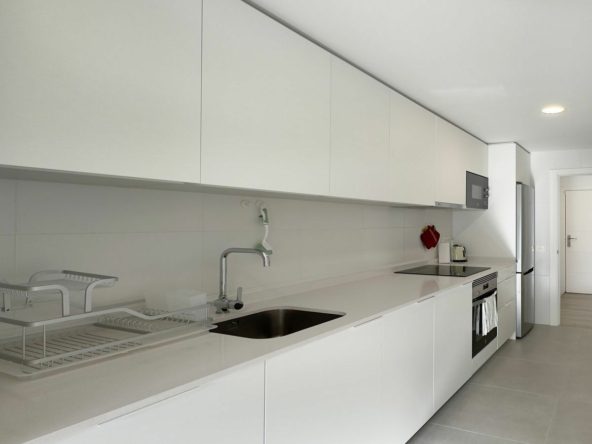 The apartment has a bright open-plan living-dining room, the kitchen is fully equipped with appliances.