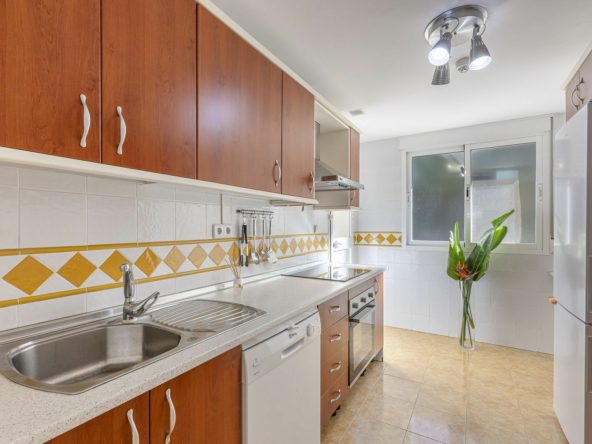 Spacious one bedroom appartment (79m²) with a full bathroom with window, kitchen with access to a laundry room and living/dining room with access to a large 54m² terrace that surrounds the entire property.