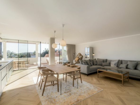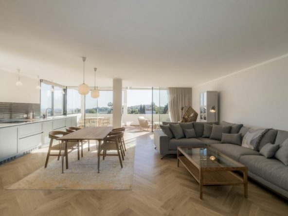 Step into luxury with this newly renovated 2-bedroom, 2-bathroom middle-floor apartment in the heart of Nueva Andalucía. Designed for modern living, it features a state-of-the-art Gaggenau kitchen, elegant herringbone wood flooring, and a spacious southwest-facing terrace offering breathtaking panoramic views.