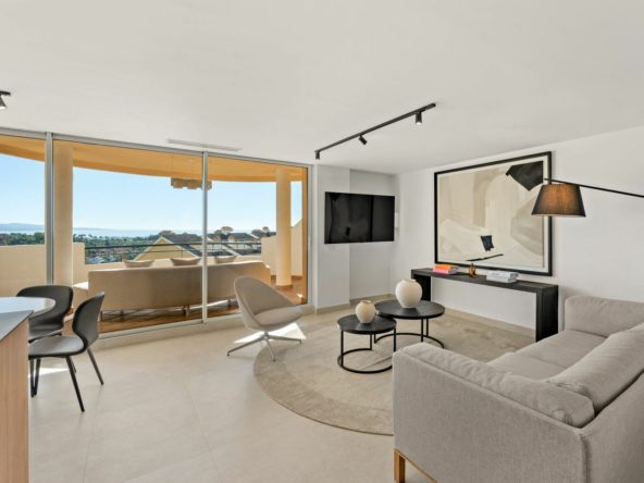 This is a fully renovated modern duplex of over 170 m² with three bedrooms, spacious terraces, and a bright open layout. Everything is brand new – from beds and sofas to a fully equipped kitchen. It feels like a brand-new home within one of Marbella’s most established and attractive developments. The large terraces are ideal for relaxing or entertaining all year round.
