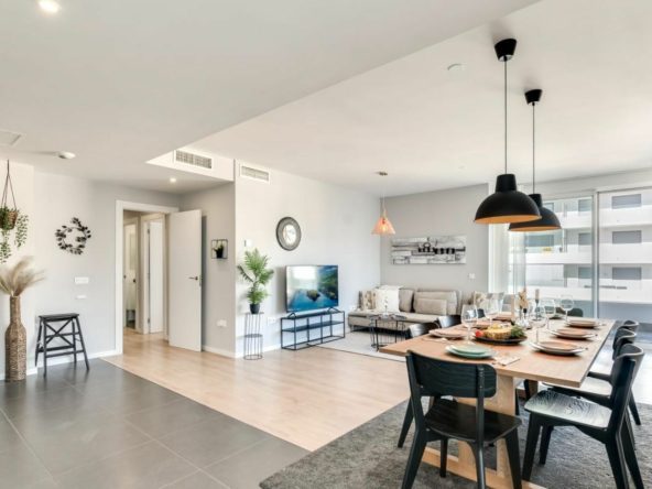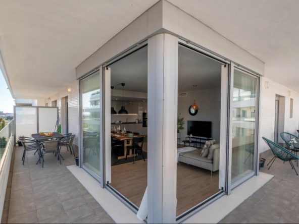 The property features three spacious bedrooms, each offering a peaceful and inviting atmosphere. The open-plan layout seamlessly connects the living room, dining area, and kitchen, creating a bright and welcoming space that’s perfect for both everyday living and entertaining. Large sliding glass doors lead to a generous private terrace—an ideal spot for sunbathing, relaxing, or enjoying al fresco dining with panoramic views.