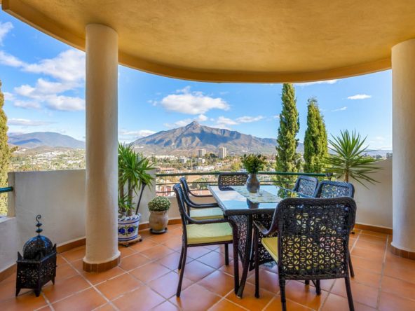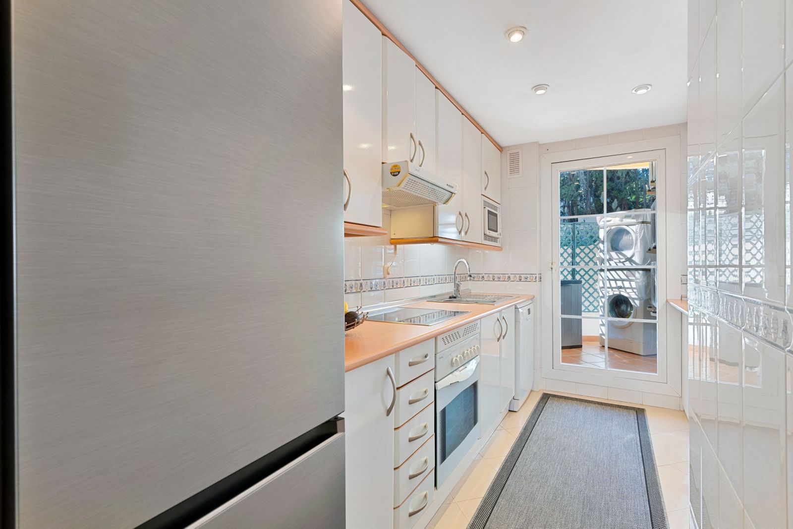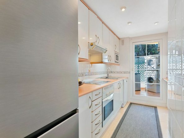 This apartment is located in Señorio de Aloha, Nueva Andalucia, Marbella, Malaga. It offers two bedrooms and two bathrooms, including one en-suite. The property has a built area of 99m² and a private terrace of 20m². It is set within a gated community, providing both security and peace of mind.