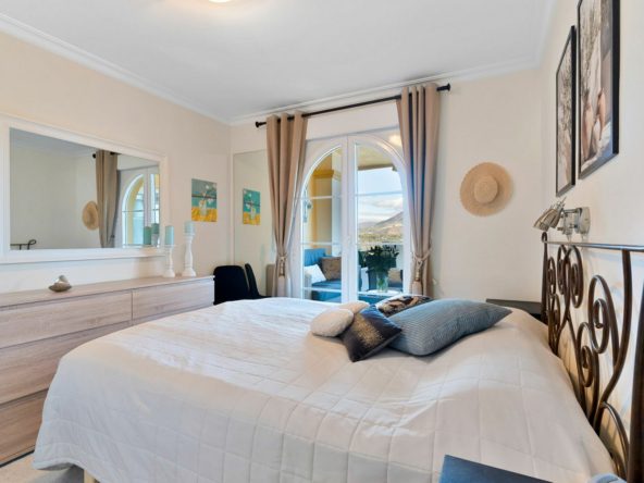 Residents have access to two communal swimming pools, a communal garden, a garage, and a storage room. The community also includes a padel court for sports enthusiasts. The apartment is on a lift-accessible floor and offers both covered and uncovered terrace spaces. Panoramic views of the sea and mountains can be enjoyed from the private terrace and living areas.