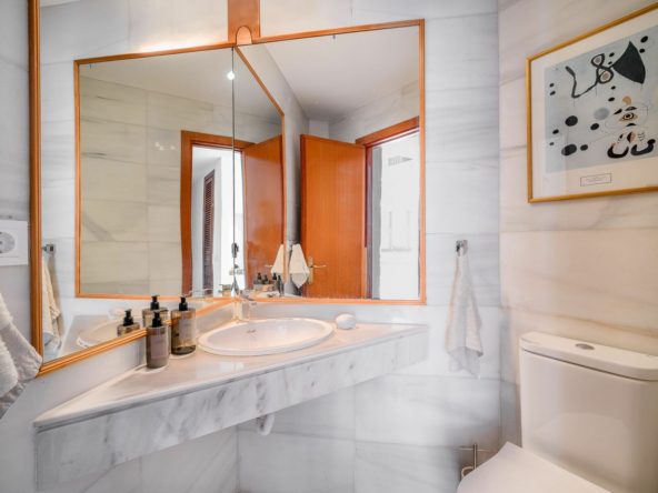 Located just few min away walking distance from Los Naranjos Golf Club this community offers great security 24/7 , easily and fast reachable main amenities like supermarkets, schools . Urbanization has 2 communal pools , garages and well maintained gardens. Perfect for the lovers of evening sun while gazing at the playing golfers. This property offers two terraces. One is North facing and very private and the main one that you can enter from the living room is West facing . The second terrace has SEA VIEWS . Both two bedrooms in the apartment have en suite bathrooms + a guest toilet. There is a possibility to make a third bedroom if needed.