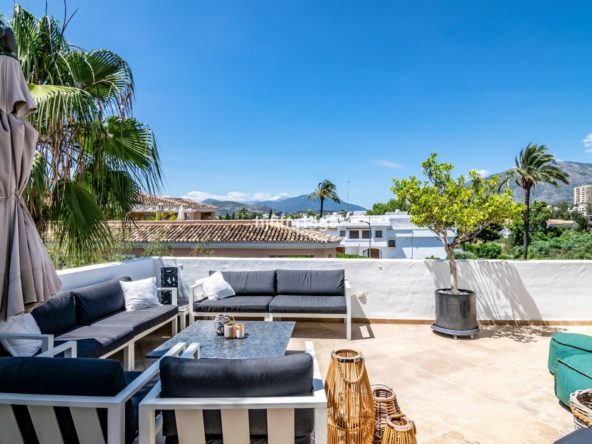 This is a renovated 3-bedroom duplex penthouse. Simply pack your bags and move in! This is a key ready property offering a complete hassle-free move in process for the new owner. On the entrance level you will find the open plan sleek kitchen, one-bedroom, bright living room and dining room and direct access out to the fantastic terrace. You cannot miss the incredible La Concha view from the living room, it looks like a photograph! Upstairs are two additional bedrooms.