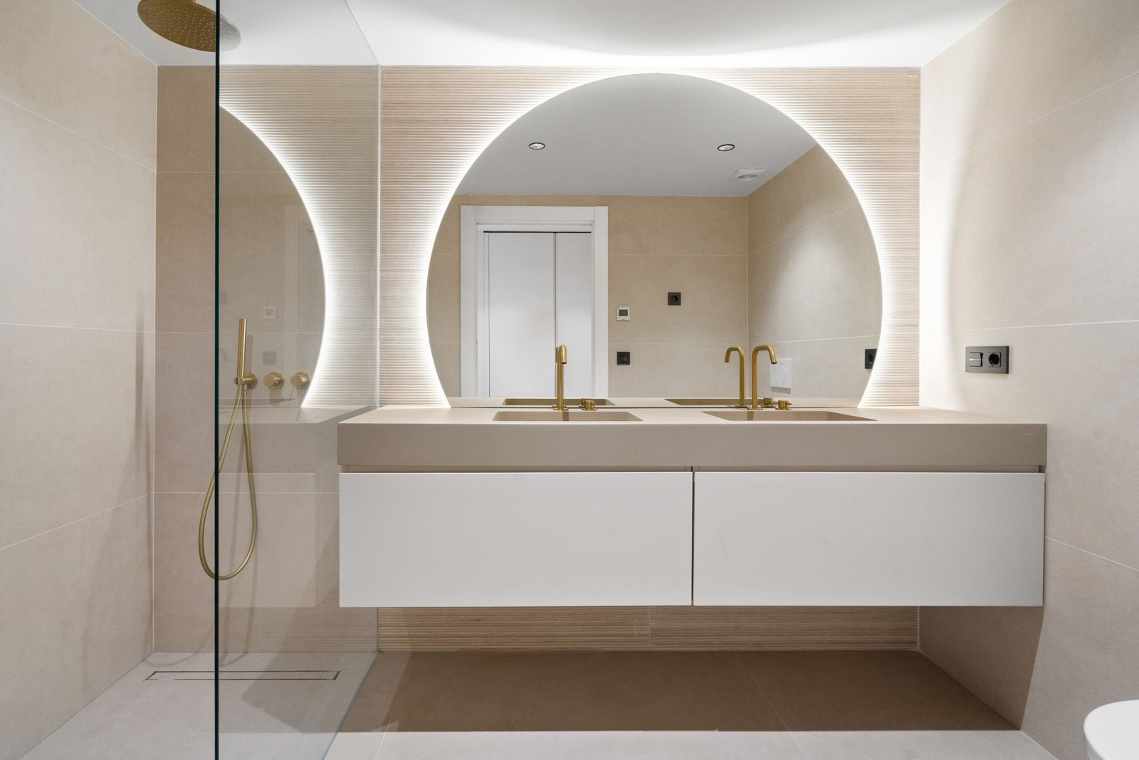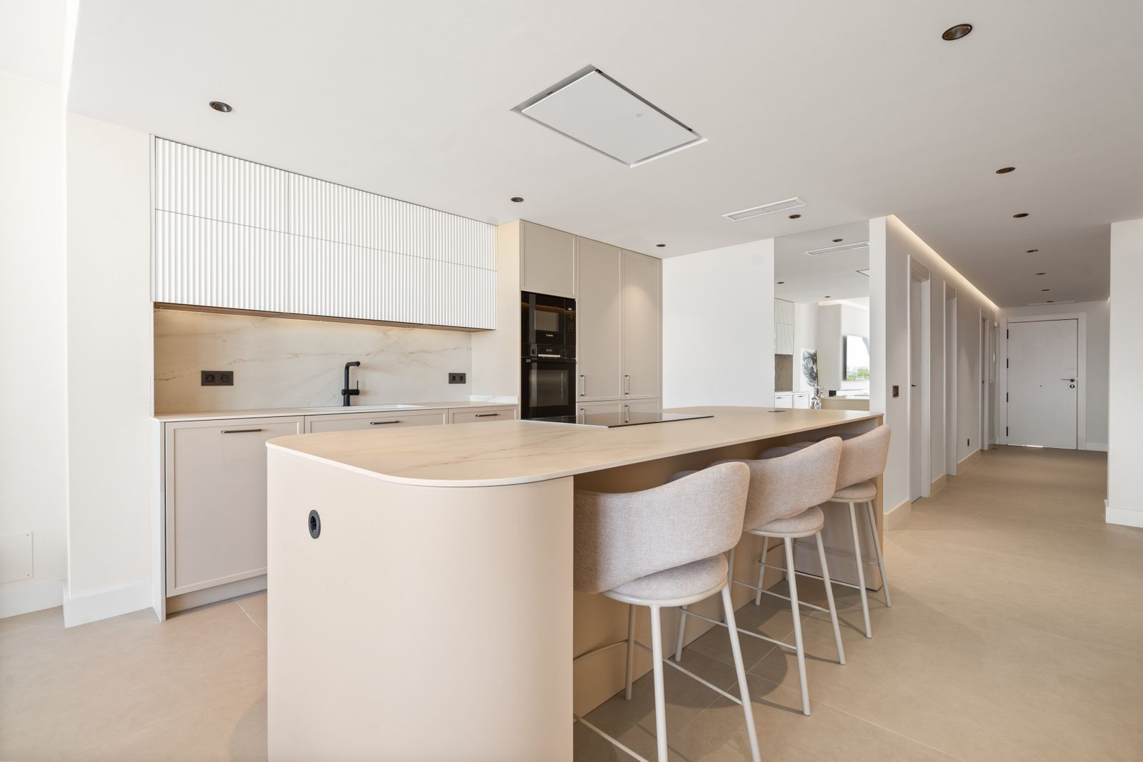 Each of the three bedrooms is fitted with bespoke wardrobes, and the bathrooms feature Italian fixtures, porcelain finishes and integrated lighting that highlight the home’s modern architecture. The renovation has been carefully executed to provide both comfort and sophistication in every detail.