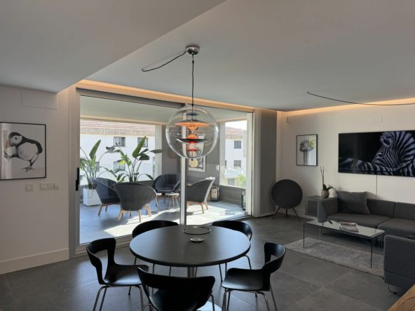 A light-filled, Scandinavian-style 3-bedroom duplex penthouse located in a new development, just a short walk from the lively harbour of Puerto Banús.
