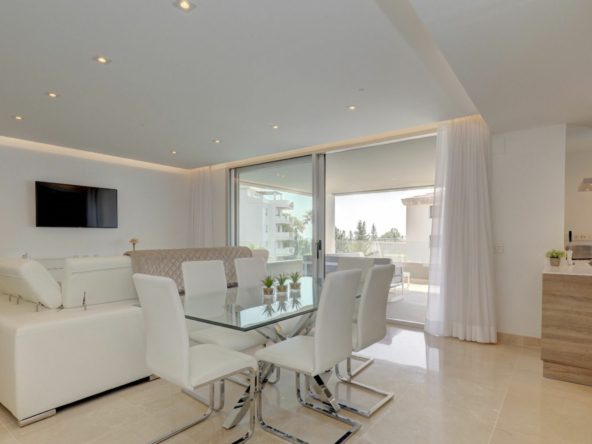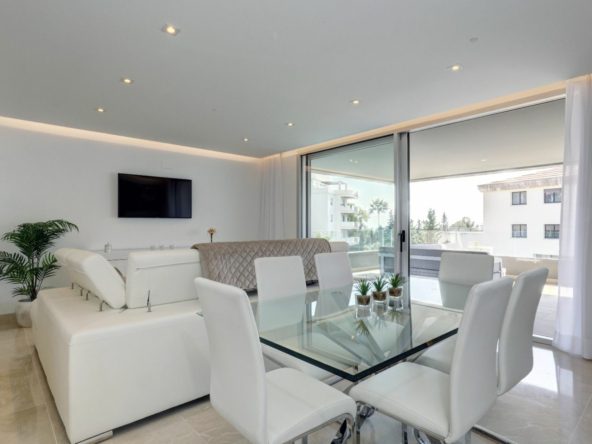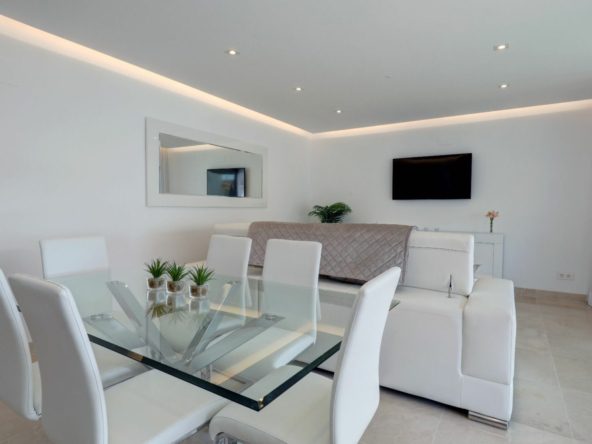 A beautiful 3 bedroom penthouse situated walking distance to Puerto Banus available for holiday rental. This 3 bedroom 2 bathroom penthouse with huge roof terrace is a modern design with high end furniture. Open plan living and kitchen area with utility room, large terrace from living area with dining table and sofas. 3 large double bedrooms with master enjoying a large en suite bathroom. Roof terrace comes with 6 sunbeds, dining table and bbq area. Great sea views and private garage space included. A 10 minute walk you have everything you need with restaurants, shops and the world famous Puerto Banus.