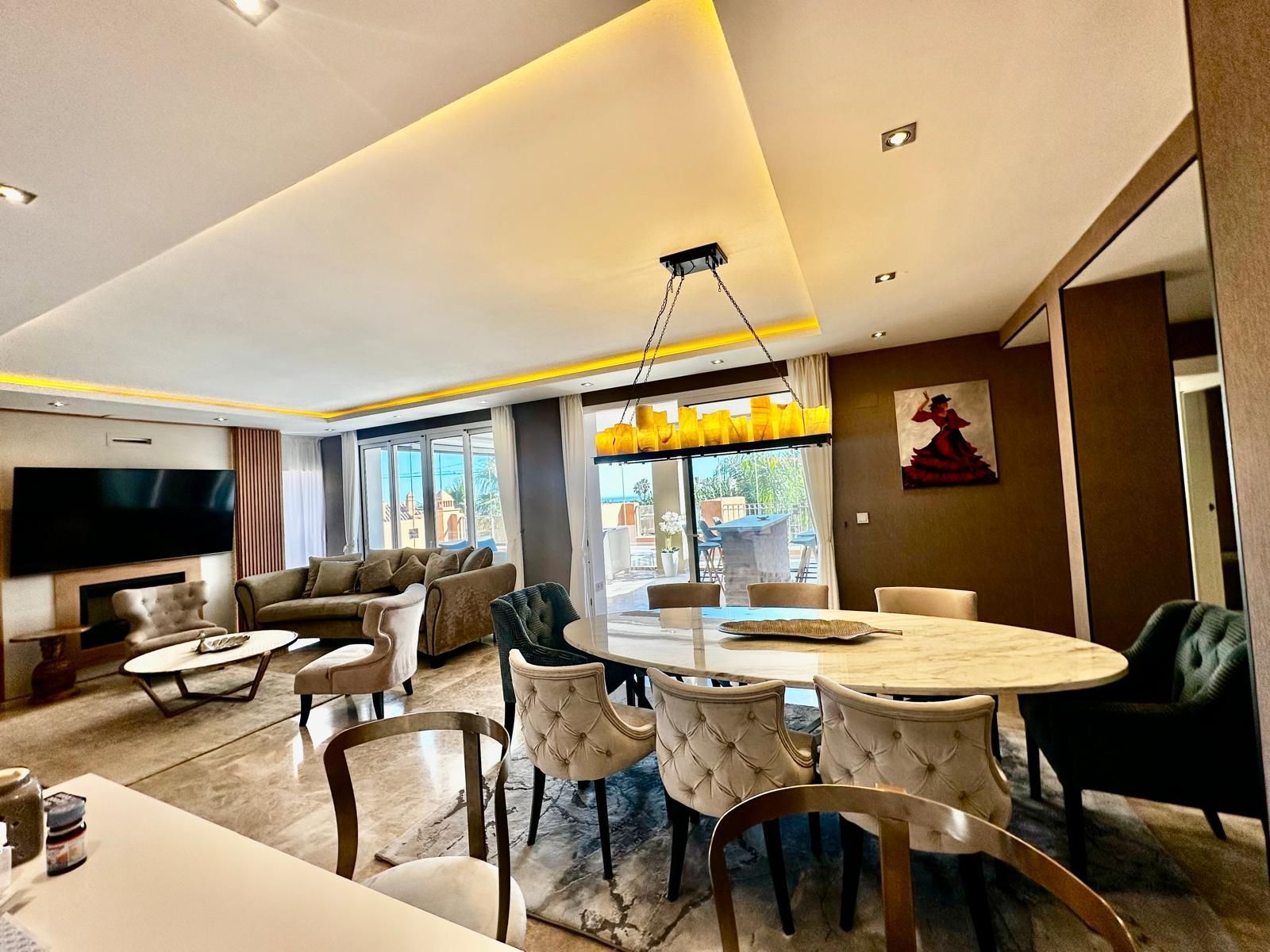 Spectacular duplex penthouse with 3 bedrooms and 3 bathrooms in an exclusive development in Nueva Andalucía, recently renovated combining elegance and comfort, on the main floor there are two spacious bedrooms and two bathrooms, a modern fully equipped kitchen with separate laundry area and a bright living-dining room with access to a wonderful covered terrace, perfect to enjoy with family and friends, from this terrace there is also access to a large open terrace ideal for relaxing outdoors, on the upper floor is the master bedroom with en-suite bathroom and access to a large private solarium with stunning views of the Mediterranean Sea and the mountains, the development offers a peaceful and distinguished environment with landscaped areas, swimming pool and security, the property also includes two parking spaces and a storage room, a unique opportunity for those seeking luxury, comfort and unbeatable views in one of the most exclusive areas of Marbella.