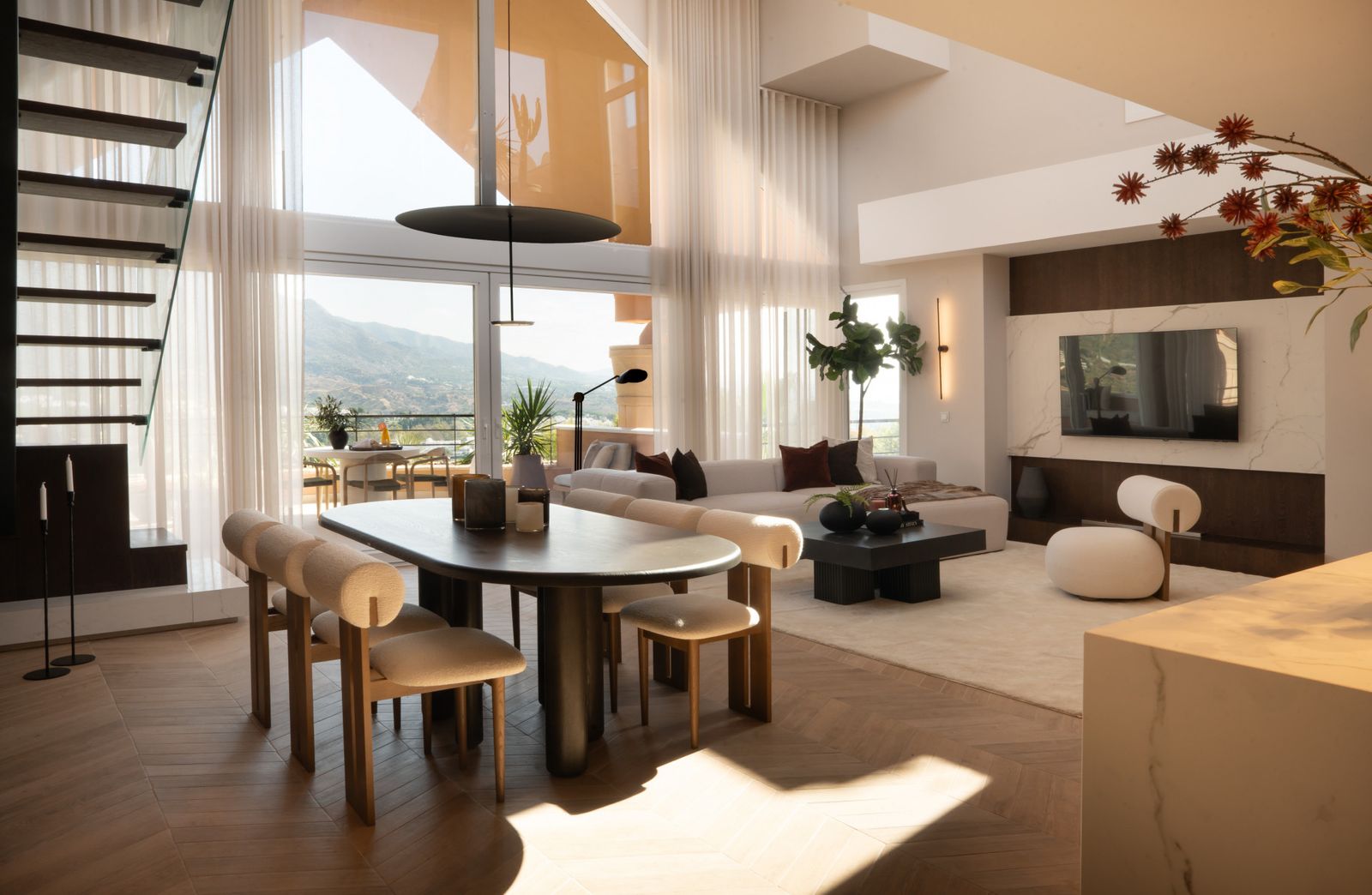 Set within the prestigious gated community of Magna Marbella, this exquisitely renovated penthouse offers a rare blend of contemporary elegance, comfort, and breathtaking scenery. Enjoying 24-hour security and an elevated position, the property boasts uninterrupted panoramic views across the Mediterranean Sea, surrounding mountains, and manicured golf course—a truly exceptional setting for refined living.