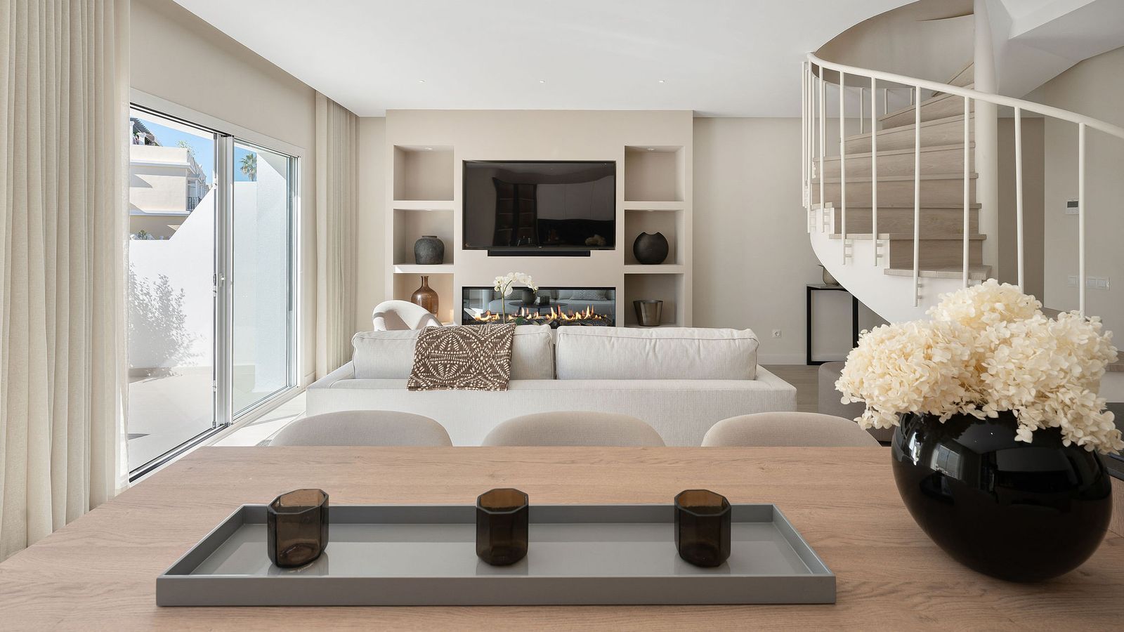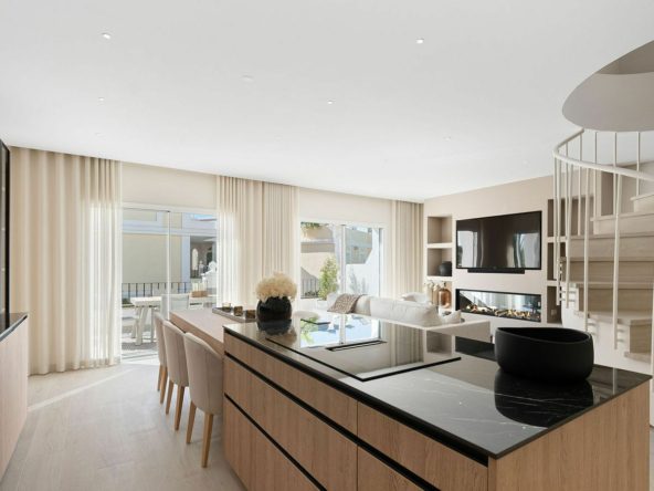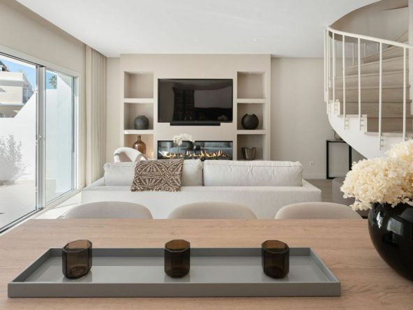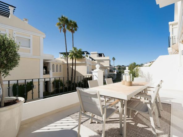 Welcome to this newly fully refurbished duplex penthouse in a popular urbanisation in Nueva Andalucia. As you enter you are greeted by the light and the soft colour scheme creating a feeling warmth and luxury. The open plan kitchen, living and dining room opens up to double doors onto the lower terrace which is perfect for that morning coffee. On this floor you also have the 4th bedroom and the combined bathroom and guest toilet. On the 2nd floor you have the large mastersuite with plenty of wardrobe space, large bathroom and a beautiful bay window looking towards Marbella and the sea. 2 guest rooms sharing a family bathroom completes this floor. The 3rd houses the solarium with beautiful sea and mountain views, a top of the line Jacuzzi and a storage room completes this space. The urbanisation has 3 pools, 24 hrs security and is situated close to the Aloha Strip with plenty of restaurants and services. Easy access to the penthouse from the underground parking space.