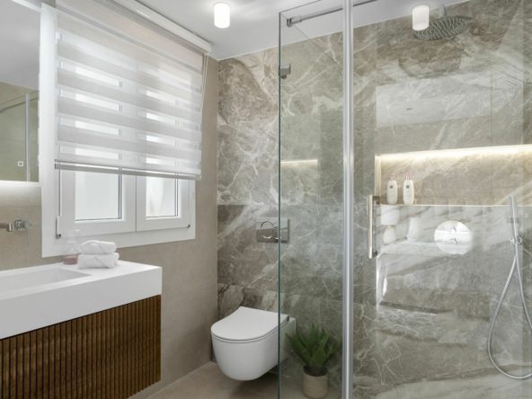Four terraces surround the home, making outdoor living a natural extension of daily life. Here you’ll find space for sunbathing, dining, relaxation, and social gatherings, all framed by panoramic views of the mountains, sea, and surrounding greenery. The large terrace with BBQ is perfect for evenings with guests, and an added layer of luxury can be achieved by installing a jacuzzi.