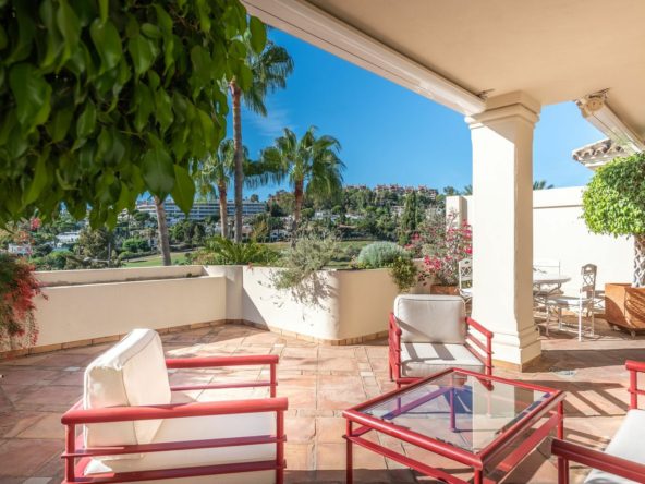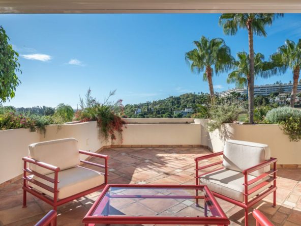 Presenting a unique opportunity to acquire an outstanding 3-bedroom duplex penthouse in the highly desirable community. This gated complex offers 24-hour security, three swimming pools (including a heated pool), beautifully manicured tropical gardens, a gym, and a sauna. Ideally situated between Los Naranjos Golf Club and Las Brisas Golf, this development is a favorite among golf enthusiasts. Residents can enjoy easy access to a variety of amenities, including shops, supermarkets, restaurants, Puerto Banús, and local beaches.