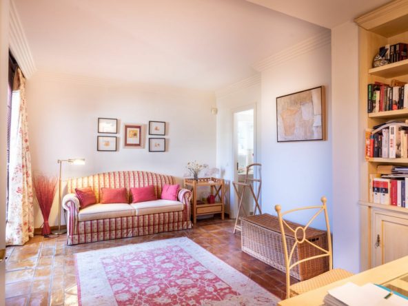 The spacious living and dining area opens onto a terrace that provides both sun and shade all day long, offering stunning views of the swimming pool, gardens, and La Concha mountain from the rear terrace.