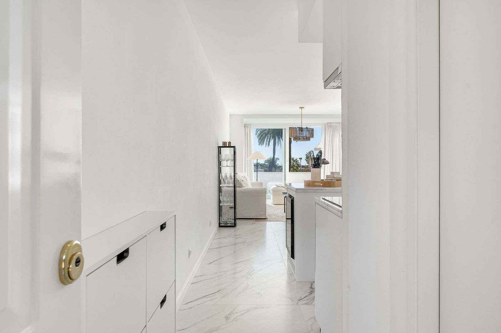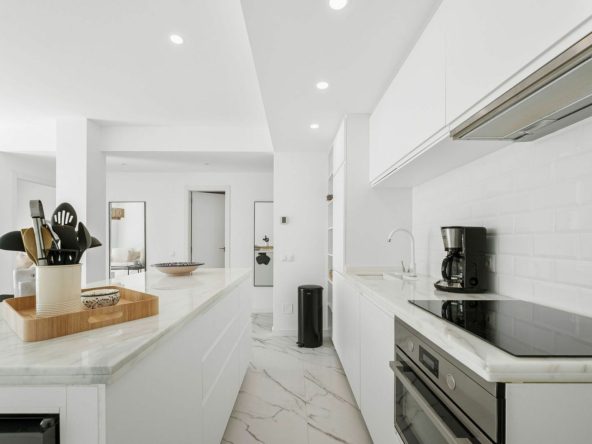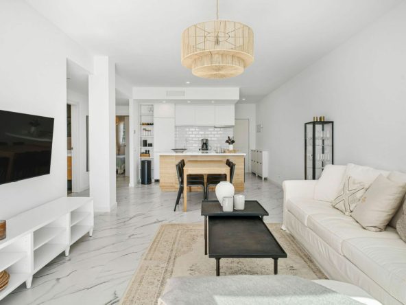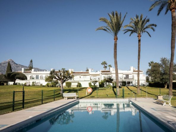 A rare opportunity to buy a top floor renovated apartment situated in the popular gated complex of La Rinconada in the Golf Valley, Nueva Andalucia within walking distance to restaurants, shops, bars, cafe's, sports facilities and just few minutes’ drive to best golf courses the area has to offer. The property has a south orientation, providing views overlooking the well-manicured garden and pool area. The apartment is bright and spacious featuring an open-plan modern kitchen, living/dining area leading out onto the spacious private terrace with aditional seating area, three bedrooms, one of which is ensuite and two guest bedrooms sharing a bathroom. Further features include covered parking and U/F heating in bathrooms.