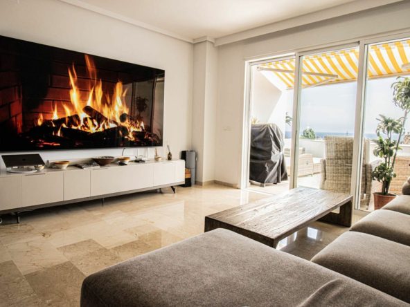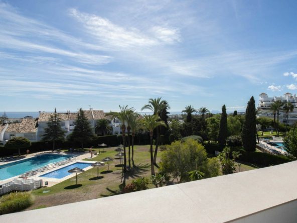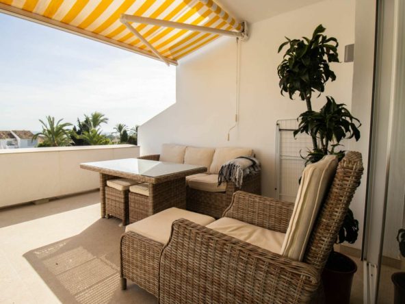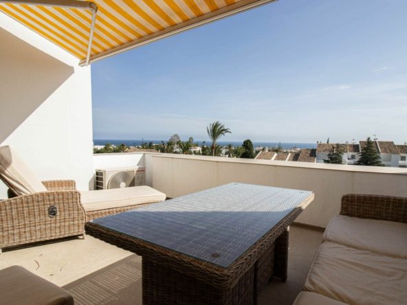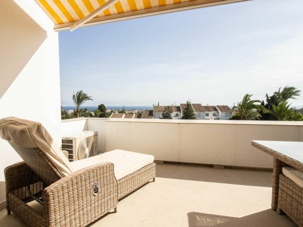 Welcome to this exclusive and newly renovated penthouse in a very popular and financially stable urbanization. The apartment comes with two spacious bedrooms. The master bedroom and the guest bedroom has its own ensuite bathroom. Both bathrooms are equipped with under floor heating. The open plan kitchen is fully equipped with high-end appliances, giving a touch of luxury and functionality with its natural connection to the living room. This penthouse has a generous, private terrace, where you can enjoy the sun all day or just catch the moment and soak in the panoramic view. The complex is gated with camera security for your peace of mind, and as a resident you have access to two pools – one of which is a children's pool. The pools are surrounded by a large beautiful garden, where you can spend your day relaxing or sunbathing. The apartment includes an underground garage space with a very useful locked storage room. Malambo is one of the most desirable complexes in the area, just a few minutes walk from Centro Plaza, which offers a wide range of restaurants, banks, gym and shops. Within 10 minutes drive you will find a wide range of internationally renowned golf courses such as Los Naranjos, Aloha and Las Brisas which is ranked among top 10 courses in Spain. You will also enjoy convenient walking distance to Puerto Banús, with its beautiful promenade, restaurants, cafes, night clubs and several international schools. The airport in Malaga is only a 45 minute drive away and the centre of Marbella with the famous old town a 10 minute