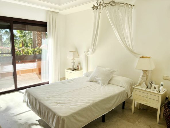 The east facing property offers spacious accommodation distributed over two floors comprising of, on the entrance floor, there is a large combined lounge and dining room with a fireplace and direct access to the corner terrace. The fully equipped kitchen is top of the range and finished to the highest quality with large wooden windows that give a wonderful view of the mountains, with breakfast area and a laundry room. The master bedroom en suite with a hydro-massage bath and a dressing room also have direct access to the terrace and a guest cloakroom. On the upper floor, there are two bedrooms en suite, one of them with a dressing room, the two bedrooms have access to the large solarium terrace on the corner.