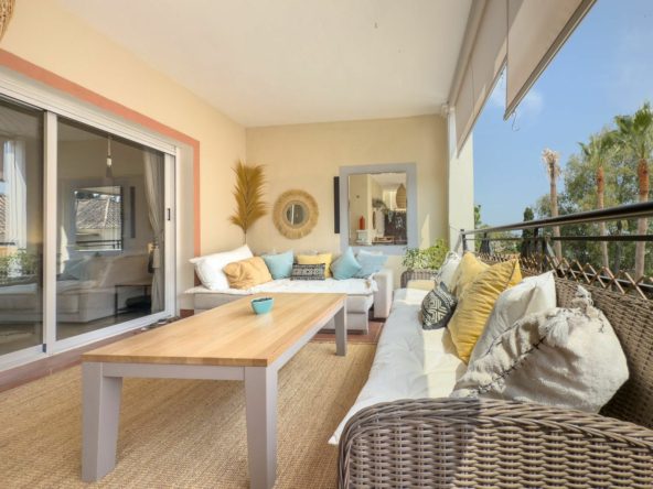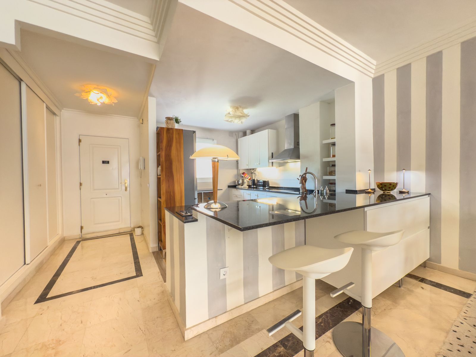 Ideally situated in the heart of Nueva Andalucía, this spacious apartment for sale offers the perfect blend of comfort, convenience, and lifestyle. Featuring 2 bedrooms and 2 bathrooms, along with a generously sized open kitchen, the layout is both practical and inviting. The living room includes a fireplace, large windows, and direct access to a covered terrace overlooking the communal area. The apartment includes underground parking and storage. Additional parking space could be purchased for 20,000EUR.