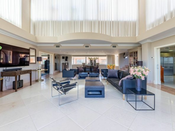 With Almost 1200m2, this amazing property has 5 bedrooms with 5 bathrooms en suite, one guest toillet, living room with double high ceilings, separate dinning room, kitchen with two double fridges, two ovens, two dishwashers, huge solarium with a private heated pool on the rooftop, and 360º views to the sea, mountain and golf.