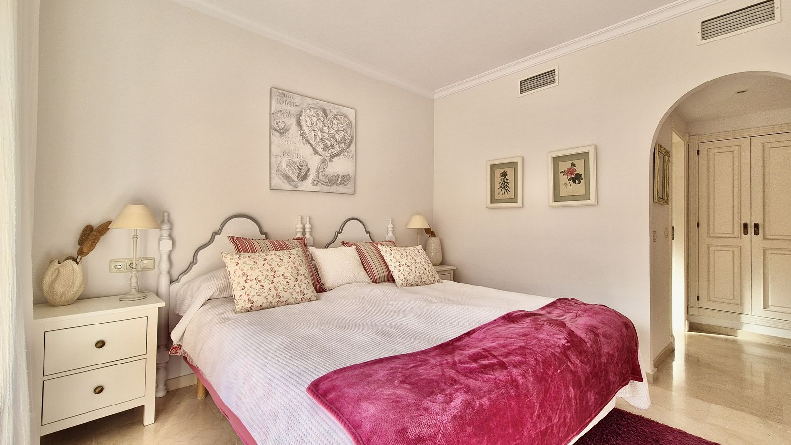The main bedroom features an en-suite bathroom and direct access to the terrace, creating a peaceful retreat with plenty of natural light. The second bedroom is equally comfortable, supported by a well-appointed guest bathroom.