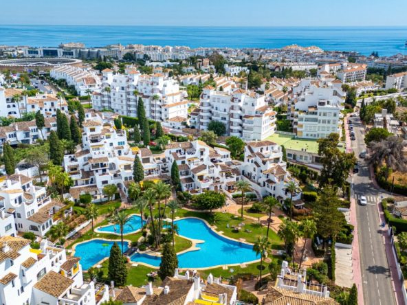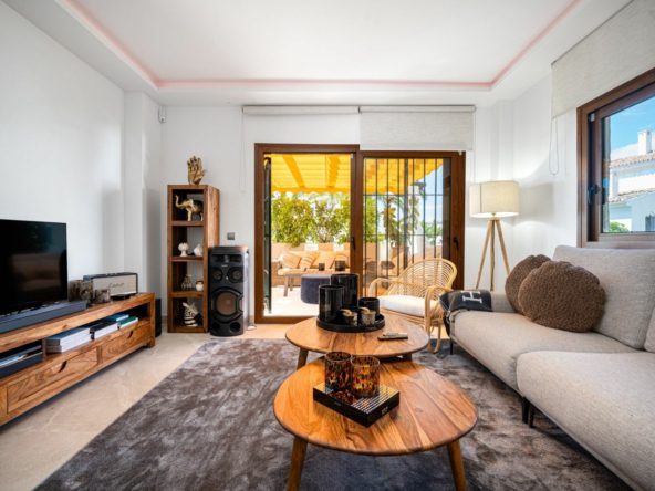 This stunning ground floor apartment, Apartment Aldea Blanca, offers a rent to buy opportunity with three bedrooms and three bathrooms, all beautifully renovated in 2025. The open plan living and dining area flows seamlessly to a fully fitted modern kitchen. Large glass doors lead out to two private terraces, one directly off the master bedroom, perfect for outdoor dining or relaxation.