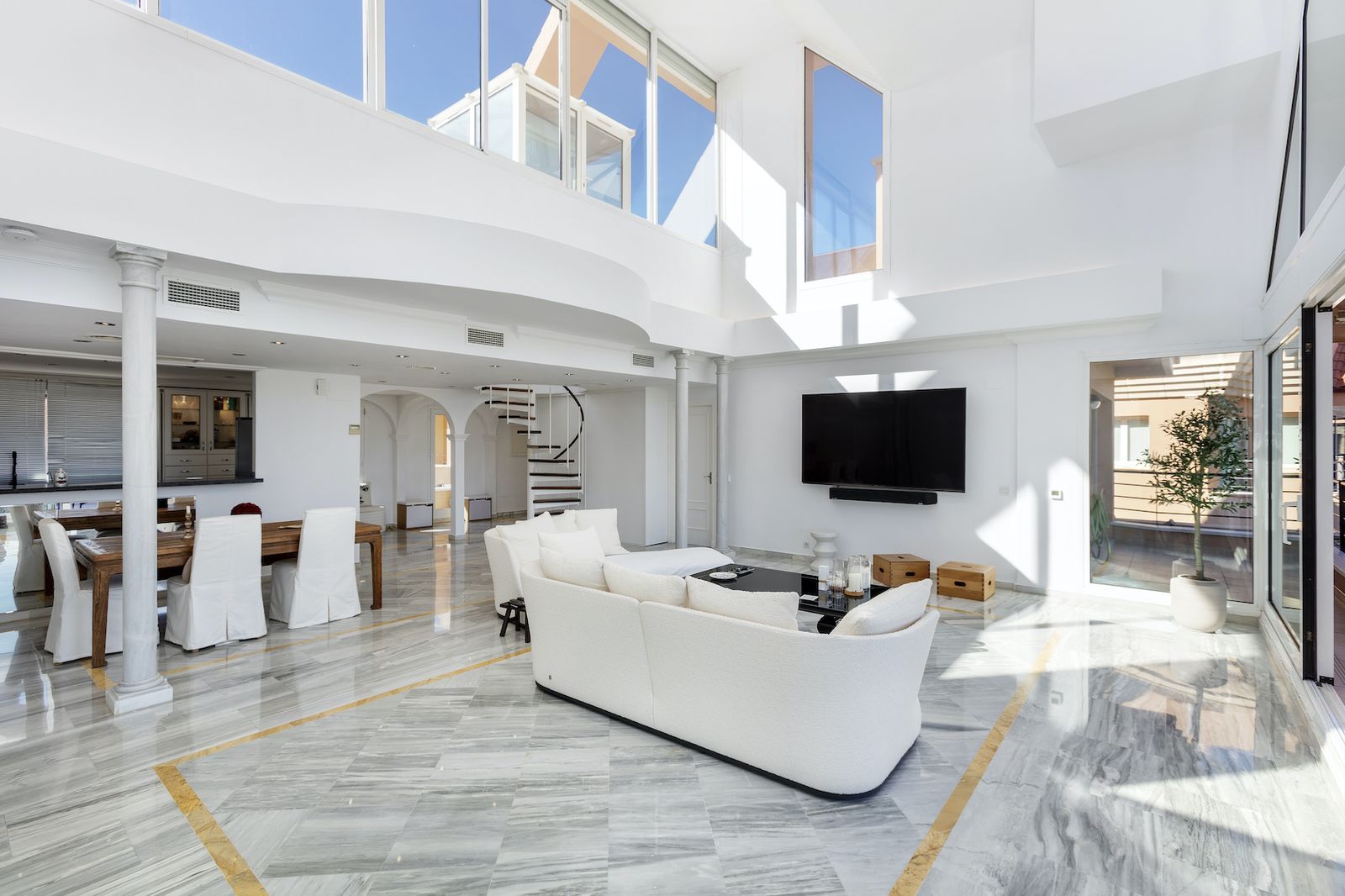 Discover one of the most spectacular vantage points in Nueva Andalucía with this rare 3-bedroom penthouse in the Magna Marbella development. Positioned in an elevated location, this residence boasts unrivalled panoramic views of La Concha mountain, the lush fairways of Los Naranjos & Las Brisas Golf Courses, and the sparkling Mediterranean Sea — a truly breathtaking backdrop from dawn to dusk.