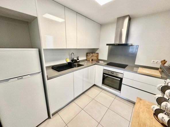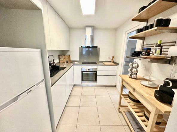 Modern furnished apartment has 3 bedrooms, 2 bathrooms, equipped kitchen with laundry room, large living room with access to the east-facing terrace.