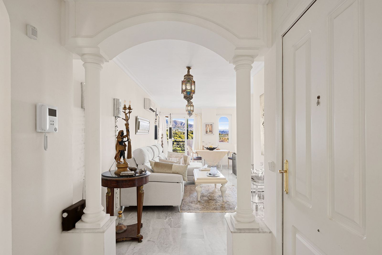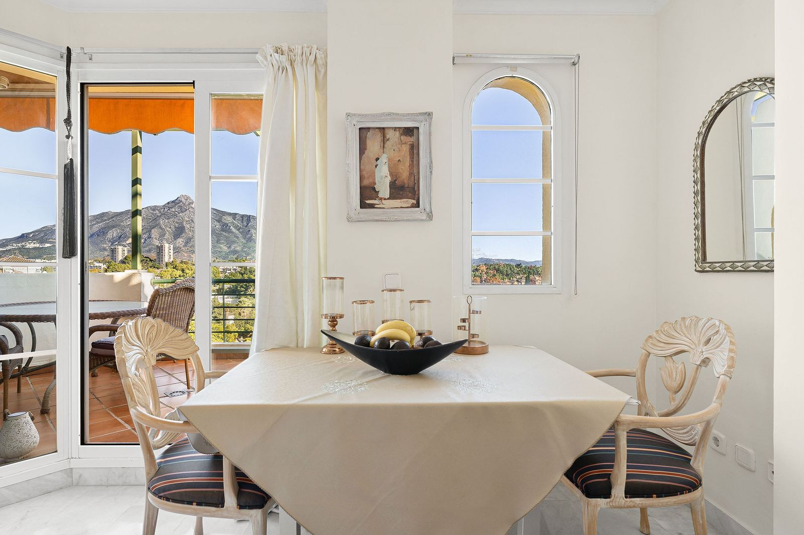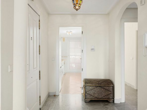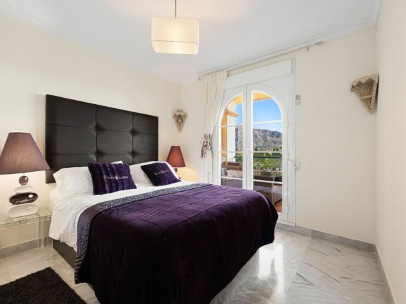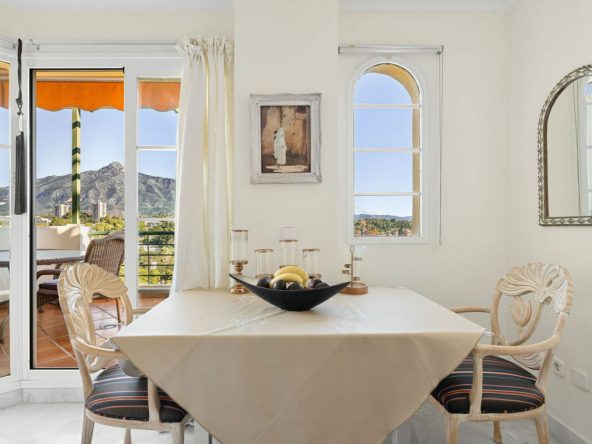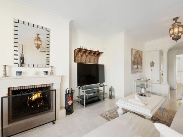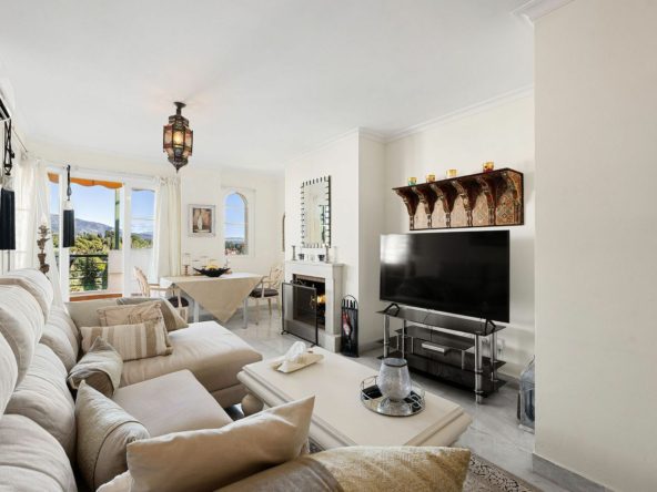 Situated in the sought-after Señorio de Aloha community in Nueva Andalucia, this attractive apartment offers two bedrooms and two bathrooms, including an en-suite. The property features 86m² of interior space complemented by a 23m² terrace, where open views of the sea and surrounding mountains can be enjoyed. The home includes a well-equipped kitchen, air conditioning, marble flooring, a fireplace, and built-in wardrobes. A. The gated complex provides excellent facilities, including two swimming pools, communal gardens, a padel court, underground parking, storage, and lift access. Conveniently located near beaches, golf courses, shops, dining options, schools, and transport.