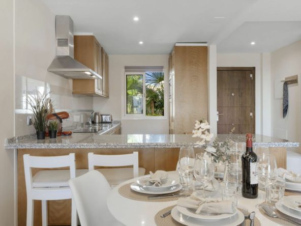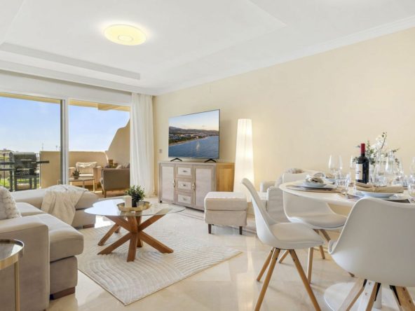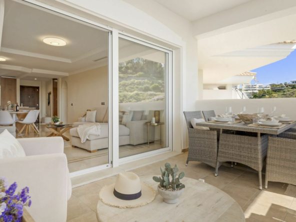 Nestled in the prestigious Aloha Hill Club, this stylish 2-bedroom, 2-bathroom home offers a built size of 124 m² plus 35 m² of terraces, designed to bring in light and capture sweeping sea views. Its southeast orientation ensures brilliant morning light and a warm, welcoming ambiance throughout the day.