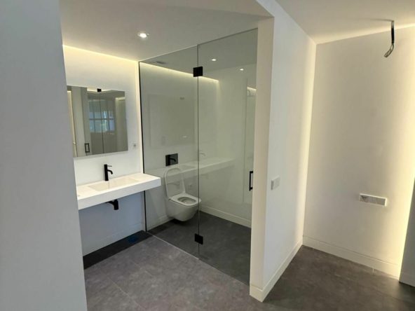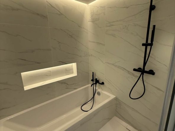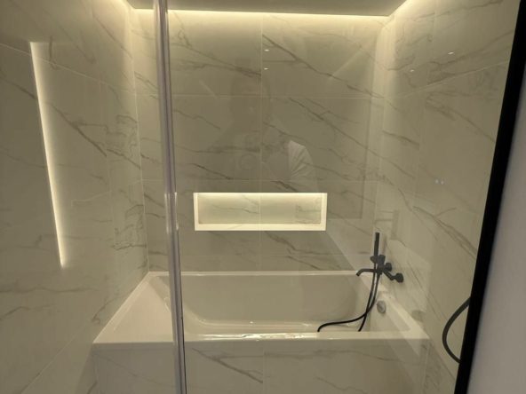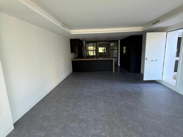 The apartment features a bright open-plan living and dining area designed to maximise light and the sense of space, seamlessly connecting with the private garden of 95 m², where pleasant views and a high level of privacy can be enjoyed. The main bedroom is spacious and bright, with a walk-in wardrobe and en-suite bathroom, ensuring comfort and independence.