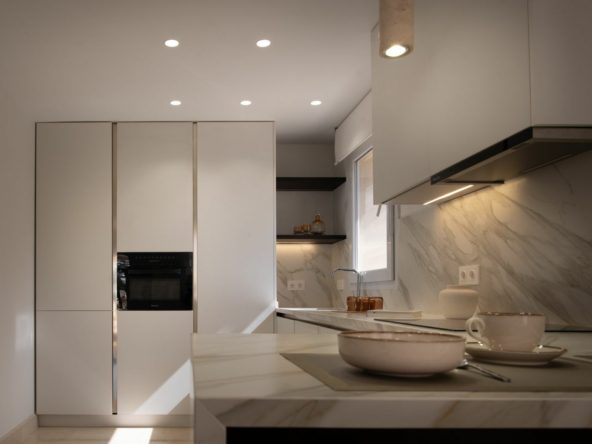 The modern Miele kitchen is fully equipped, while the bedrooms provide ample space, fitted wardrobes, and access to private terraces. The bathrooms feature high-end Dormitech fittings, combining style and functionality.