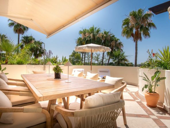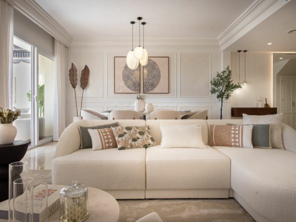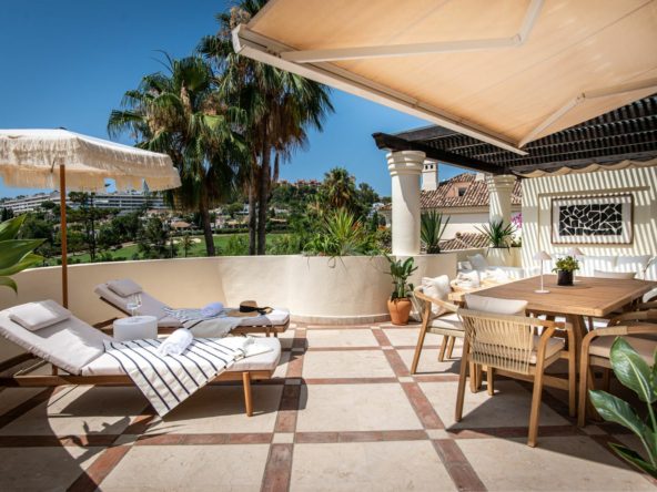 This exceptional 3-bedroom, 2.5-bathroom duplex penthouse is located in the prestigious gated community of Las Alamandas, at the heart of Nueva Andalucía’s Golf Valley. Boasting spectacular views over the lush fairways, this beautifully furnished property offers a perfect blend of elegance, comfort and style.