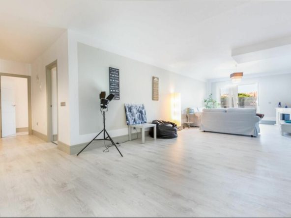 The property offers a spacious open-plan layout, creating a bright and welcoming atmosphere from the moment you enter. The living and dining area flows seamlessly into a modern, fully equipped kitchen, forming an ideal space for both relaxation and entertaining. From here, large doors open onto an impressive 50 m² terrace, extending the living space outdoors and perfect for al-fresco dining or lounging.
