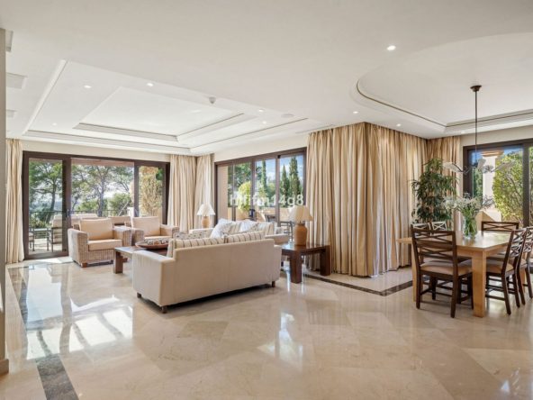This exceptional three-bedroom corner apartment is located in the highly sought-after Aloha Park, in the heart of the Nueva Andalucía area, one of Marbella’s most prestigious residential areas. Positioned just above the renowned Aloha Golf Club, the property offers a unique combination of luxury, comfort, and tranquility, surrounded by lush gardens, rolling golf fairways, and breathtaking views of La Concha mountain and the Mediterranean Sea.
