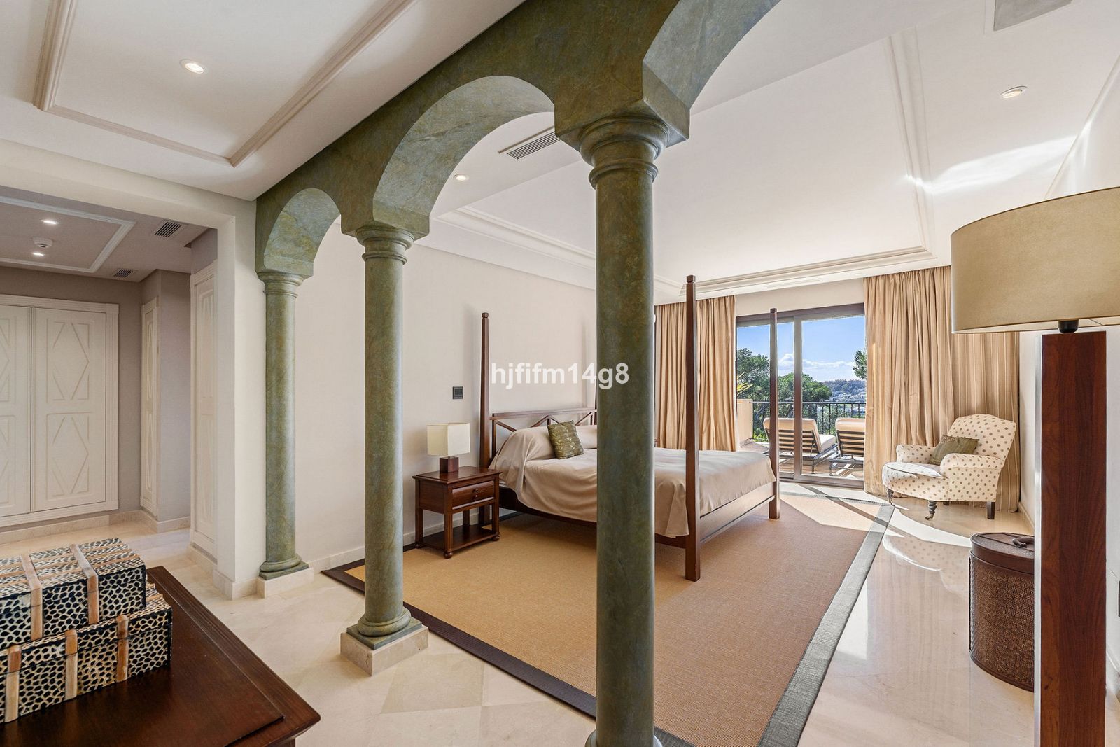 The master bedroom is generously sized, with direct terrace access and an en-suite bathroom featuring both a hydromassage bathtub and a walk-in shower. The two guest bedrooms each offer private terraces and en-suite bathrooms, while a guest toilet adds extra convenience to the property.